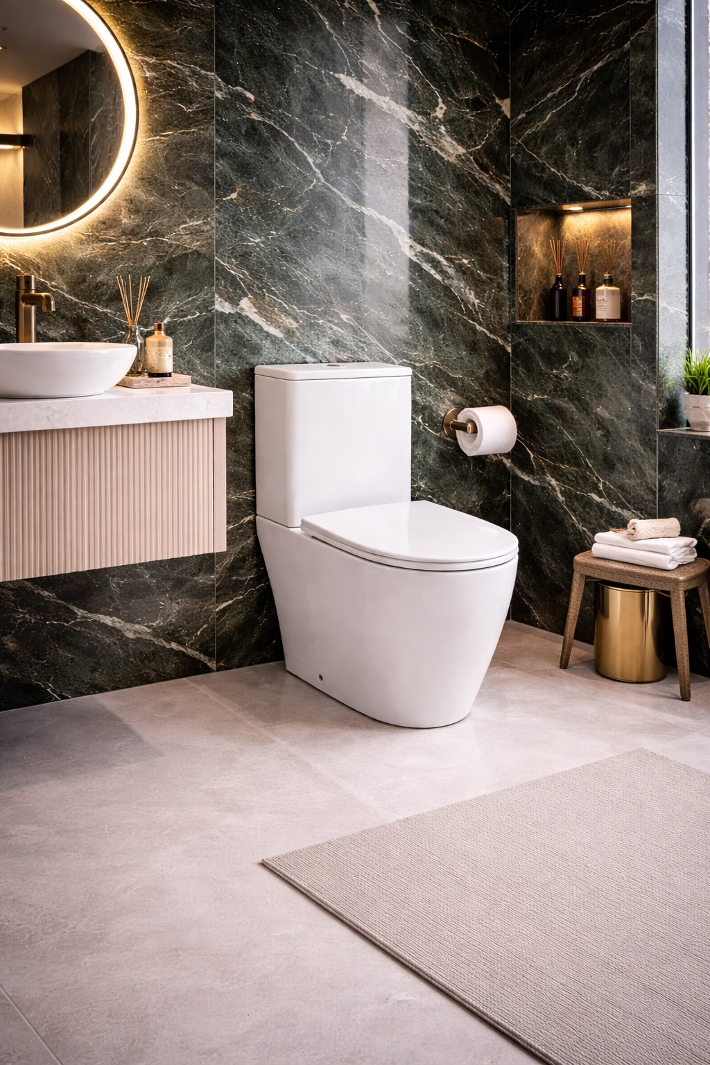 Our studio carries close coupled toilets from a range of leading brands, with options to suit a variety of budgets, aesthetics, and project types. Whether you are looking for a refined rimless pan, a soft-close seat, or a dual-flush cistern, our team can guide you through the right specification for your bathroom.